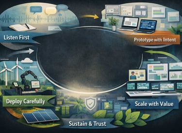 We don’t design in isolation. We listen first, prototype with intent, deploy carefully, and scale only what delivers real value safely, sustainably, and with operator trust.